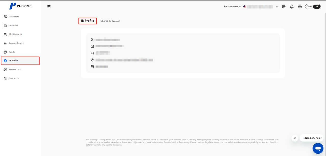 Help Center | PU Prime | More Than Trading Partnership IB Enquiry Where can I view my IB Profile? Introducing Broker can view their IB Profile with others after logging into their IB Portal, click "IB Profile".