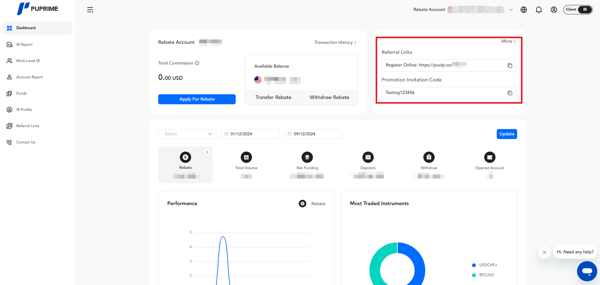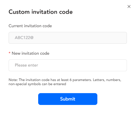 IB can customize their Promotion Invitation Code as their preferred Invitation Code (Only Letters, numbers, non-special symbols can be entered)