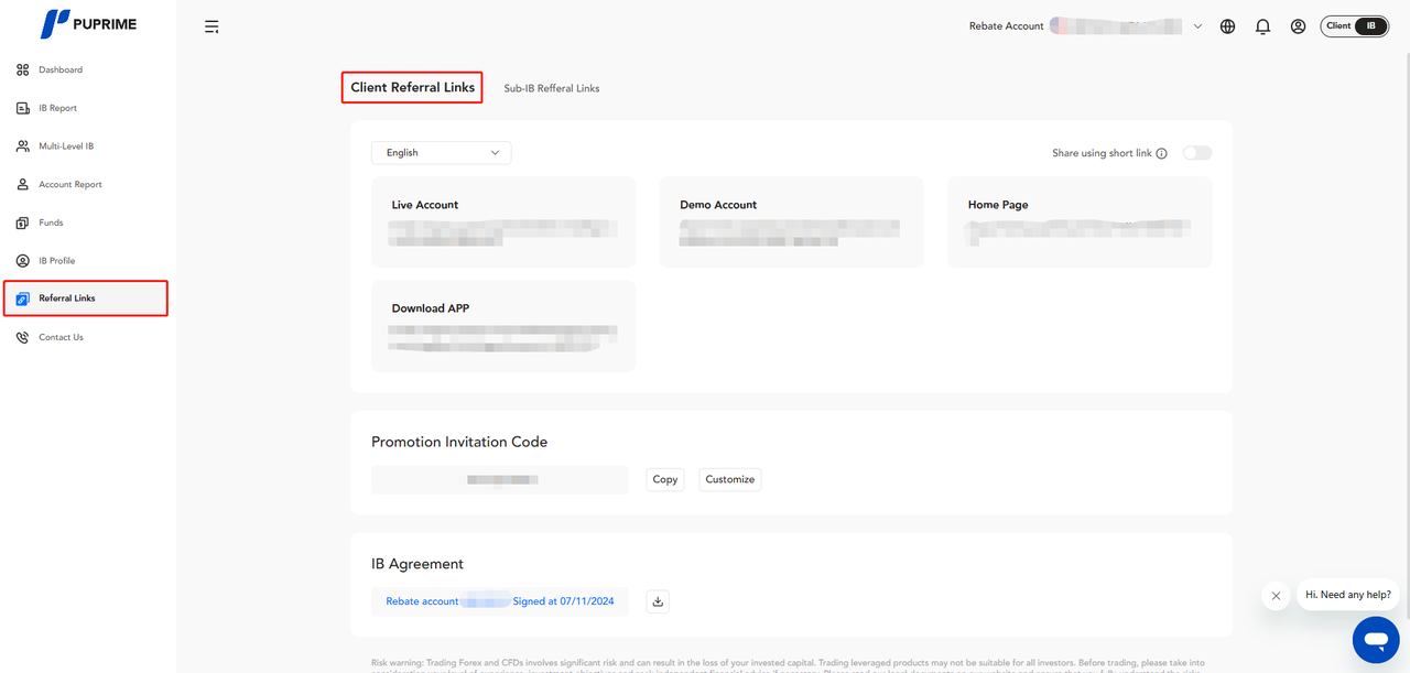 IB can use the shared short link function at the right corner of the referral link page to better protect their shared link preventing it from being changed by others.