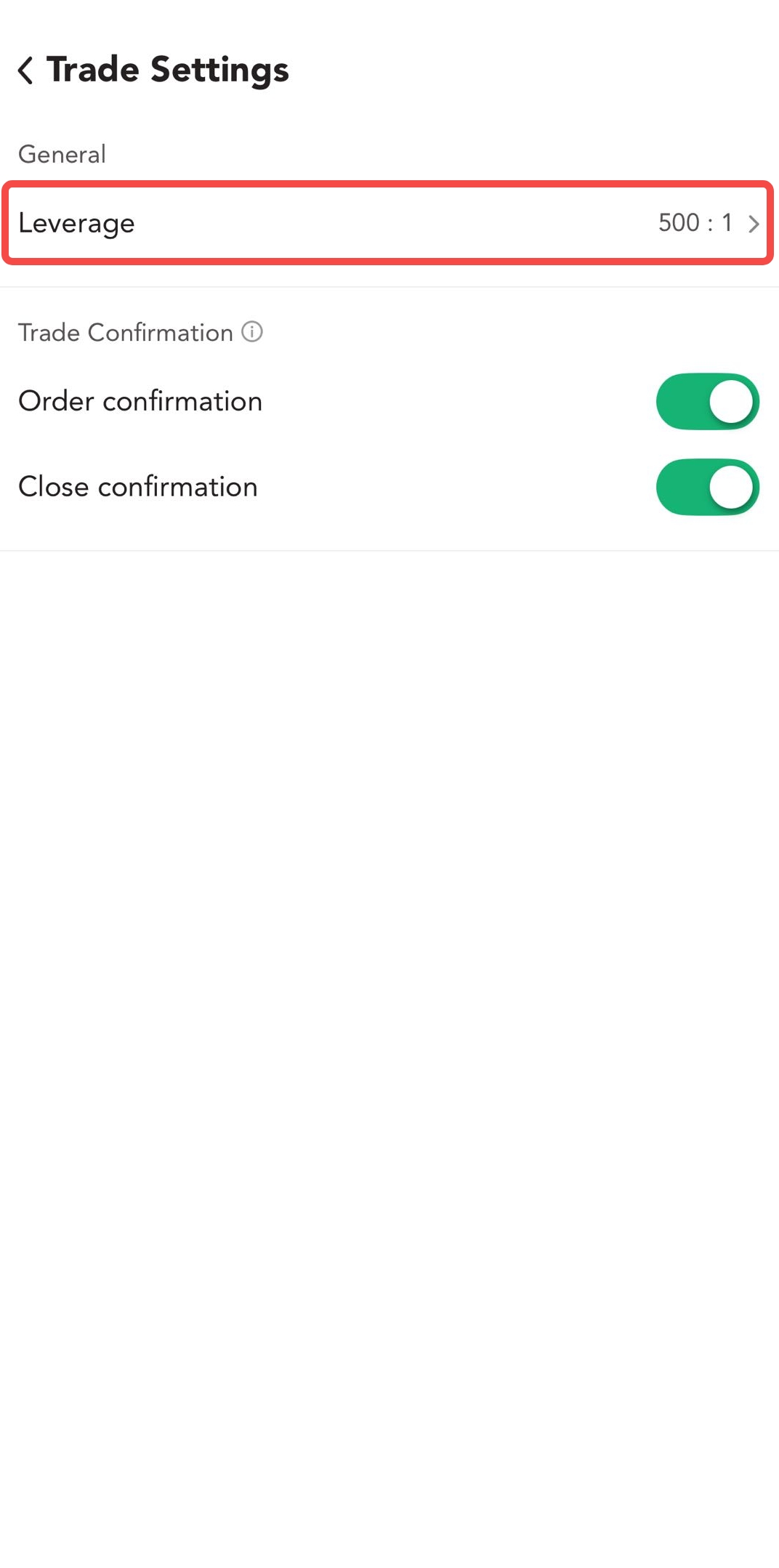 6. A pop-up notification will appear on your mobile device to confirm that the account leverage change was successful.