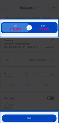 I-click ang 'Sell' kung nais mong kumuha ng short position.