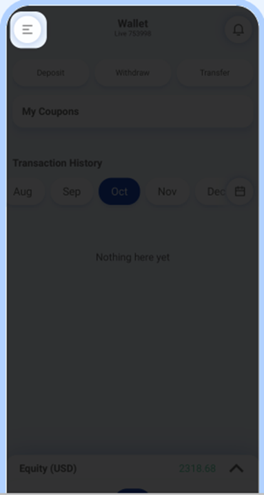 I-tap ang 'Wallet' sa ibaba ng iyong navigation bar, kasunod ay ang pag-click sa 'Deposit'.