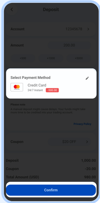 Piliin ang iyong ginustong paraan ng pagbabayad mula sa mga pagpipiliang magagamit at i-click ang 'Confirm' para magpatuloy. Hihilingin sa iyo na punan ang iyong mga detalye ng pagbabayad.