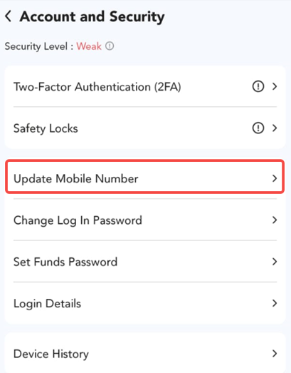 नोट: कृपया ध्यान दें कि पासवर्ड में सफल परिवर्तन के बाद 48 घंटे के लिए निकासी उपलब्ध नहीं होगी।