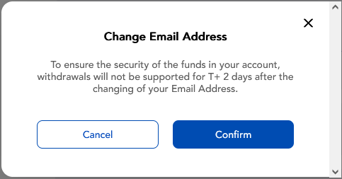 계정의 자금 안전을 보장하기 위해, 이메일 주소 변경 후 T+ 2일 동안 출금이 지원되지 않습니다.