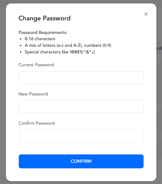 Help Center | PU Prime | More Than Trading 계정 관리 클라이언트 포털 고객 포털에서 비밀번호를 변경하는 방법은 무엇인가요? 고객 포털에 로그인한 후 페이지 오른쪽 상단으로 이동하여 "인증"을 선택하고 "보안 관리"를 선택하세요. 계좌의 자금 보안을 위해 비밀번호 변경한 후, T+ 3일 동안은 출금이 불가합니다. 비밀번호 변경을 진행하려면 "확인"을 클릭하세요. 현재 비밀번호를 입력하고 비밀번호 요구 사항에 따라 새 비밀번호를 입력합니다. 비밀번호 변경을 완료하려면 "확인"을 클릭하세요.