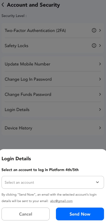 Help Center | PU Prime | More Than Trading PU Prime App Pertanyaan Aplikasi PU Prime Cara menghantar semula Butiran Log Masuk 1. Ketik pada butang "Profile". 2. Ketik "Account and Security". 3. Ketik pada "Login Details". 4. Pilih akaun anda dan ketik "Send Now". Sila tunggu beberapa minit untuk menerima emel.