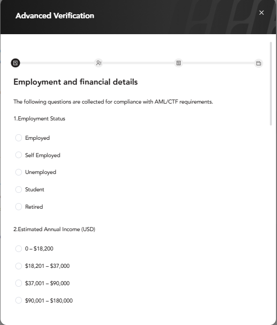 O cliente precisa concluir o procedimento de verificação "Plus" para ser elegível para realizar um saque via transferência bancária internacional.