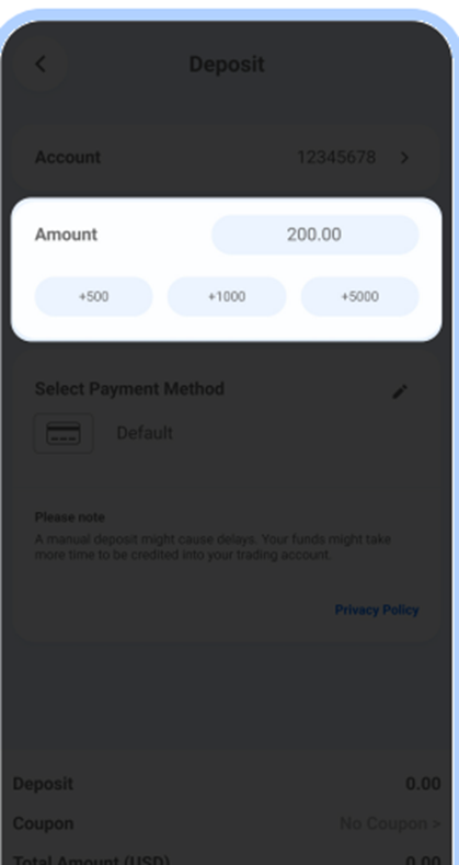 Введите сумму, которую вы хотите внести на депозит.